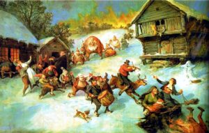 A unos cuantos kilómetros a los agricultores noruegos se les exigía que preparasen cerveza ale de Yule (juleøl) para sus trabajadores o serían expulsados de sus propiedades. Las fiestas de Yule se celebran cada solsticio de invierno y originalmente duraba doce días hasta que el cristianismo lo asimiló a la Navidad.